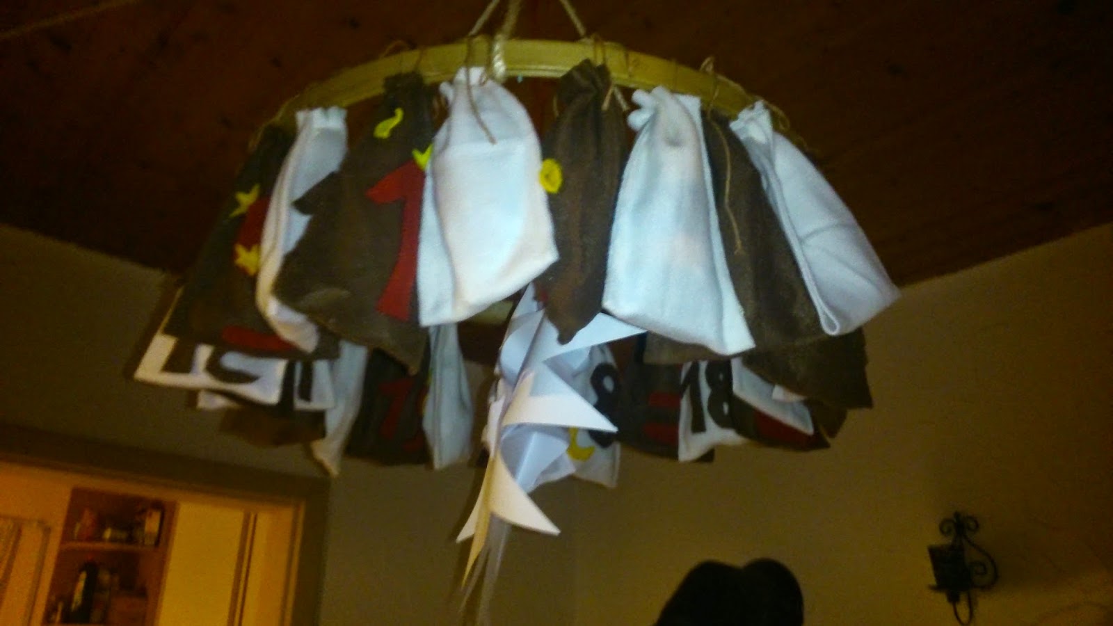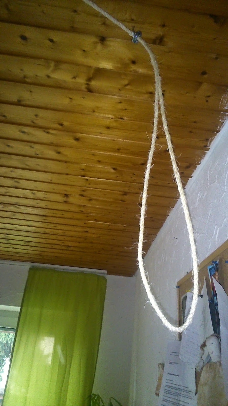 Dieser Rahmen worde von meinem Mann an einer Seilaufhängung befestigt, wo ich nach Lust und Laune den Kalender nach unten holen kann.